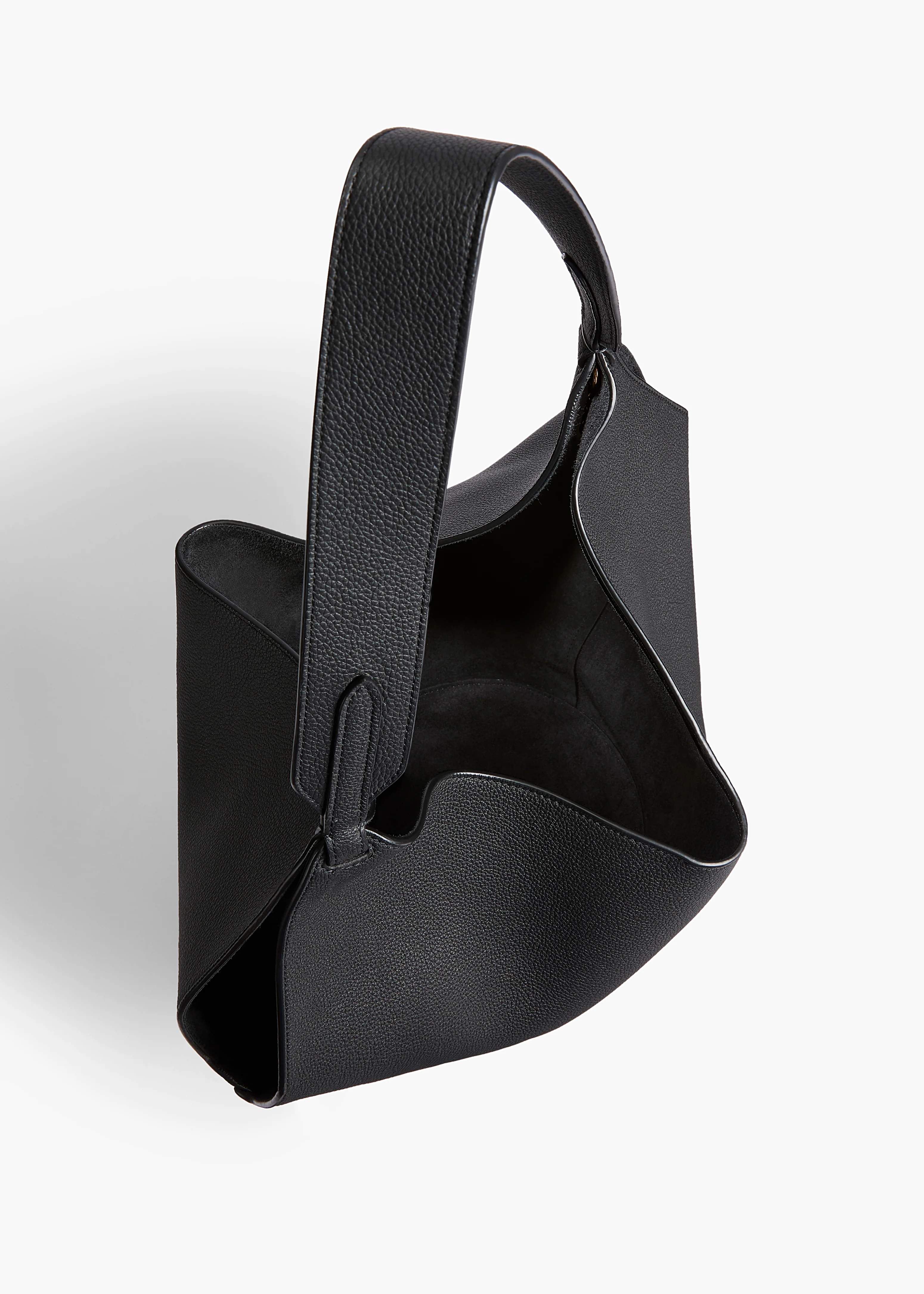 Small Lotus Tote in Black Pebbled Leather—